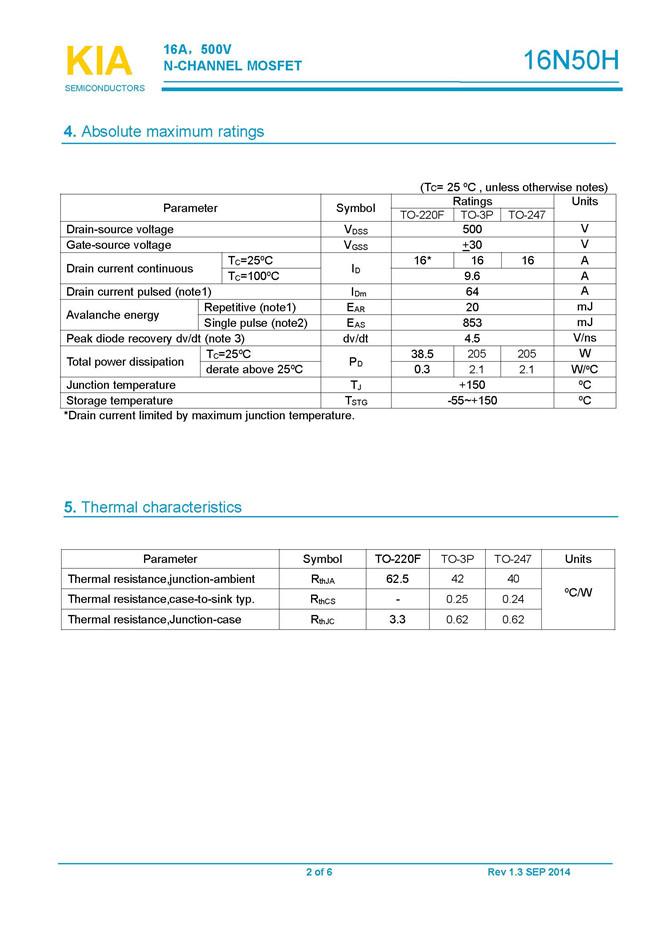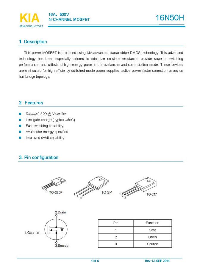 參數(shù): ID(A): 16 BVDSS(V): 500 RDS(ON): 0.38 Qg(nC): 45 Package: TO-220F、TO-3P、TO-247