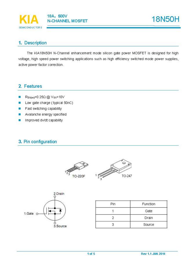 參數(shù): ID(A): 18 BVDSS(V): 500 RDS(ON): 0.32 Qg(nC): 50 Package: TO-220F、TO-247